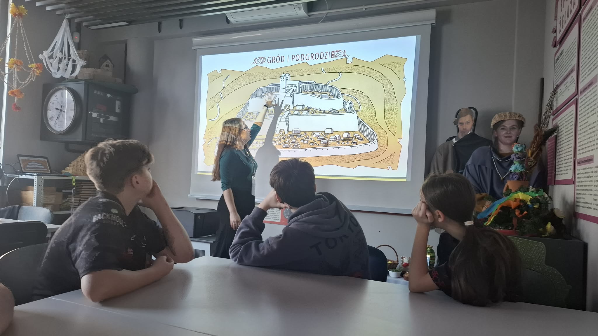 W dniu dzisiejszym uczniowie klasy 7b uczestniczyli w zajęciach edukacyjnych w Muzeum Etnograficznym w Łodzi. Podczas warsztatów uczniowie przypomnieli sobie realia życia w średniowieczu oraz poznali wybrane elementy funkcjonowania średniowiecznych miast.