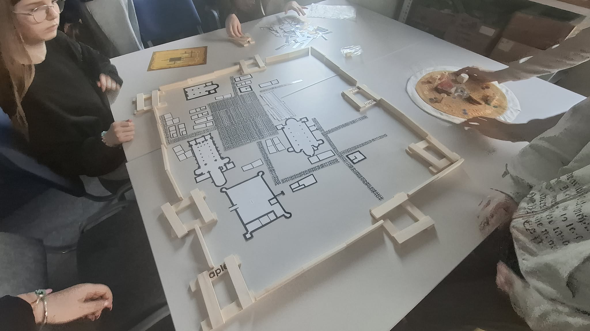 W trakcie zajęć mieli również okazję spróbować swoich sił w budowaniu średniowiecznego miasta, biorąc udział w specjalnej grze edukacyjnej przygotowanej przez pracowników muzeum.